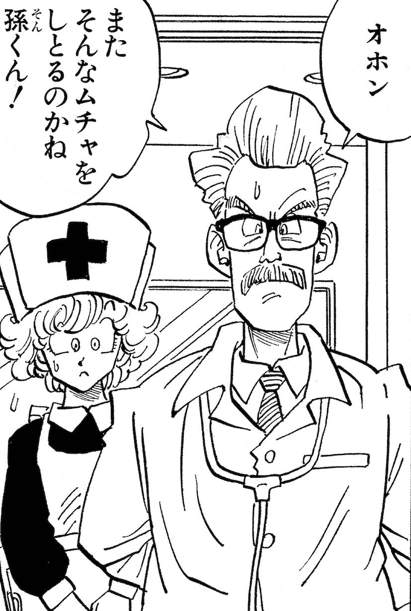 たしかに天下一武道会のシーンと迷いました! 鳥山先生がドラクエで描いた僧侶に似てるし、とりあえず医療系だろうな、と。僕は地球でベジータと戦った悟空がボロボロになって入院した病院のナースだと思いました。