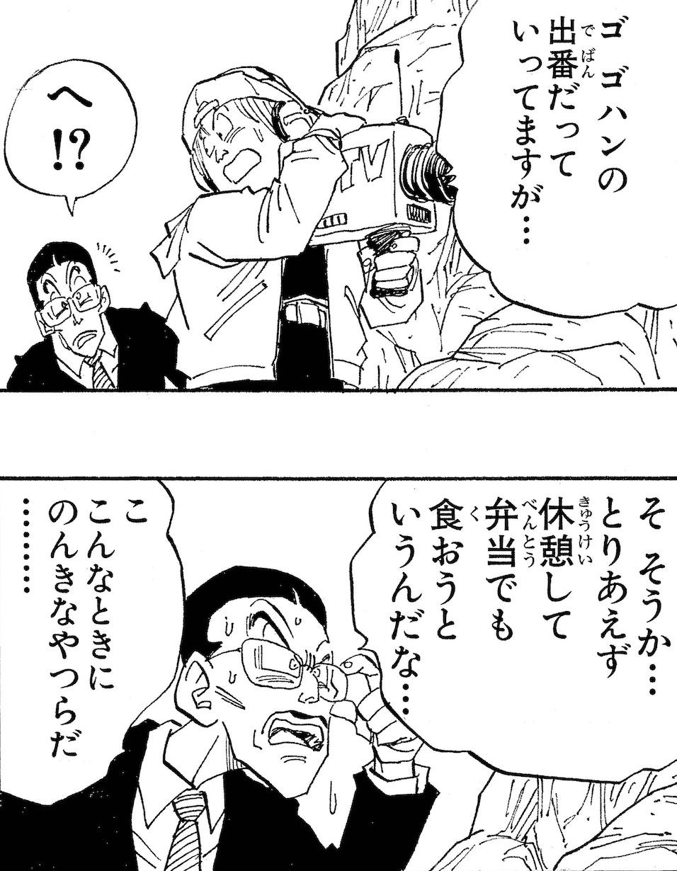 よかった。セルゲームで、悟空が悟飯に「お前の出番だぞ悟飯」って言った時、このレポーターはゴハンにかけて「弁当でも食おうと言うんだな……」ってベタなギャグを放つんです。そこが印象的で。