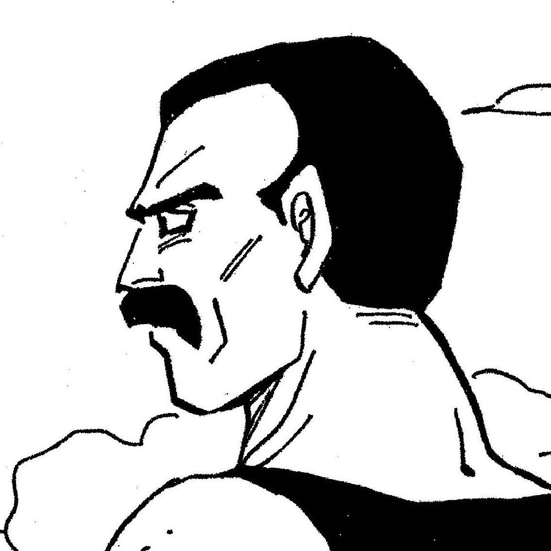 背景のスピード線に注目してほしいのですが、デザインを見る限り、おそらくこのモブキャラだけで1コマってことはない。……ということは、大勢のキャラクターが描かれたコマの端っこをトリミングしてるんじゃないかと。で、こういうやつが登場しそうなシーンといえば、天下一武道会。
