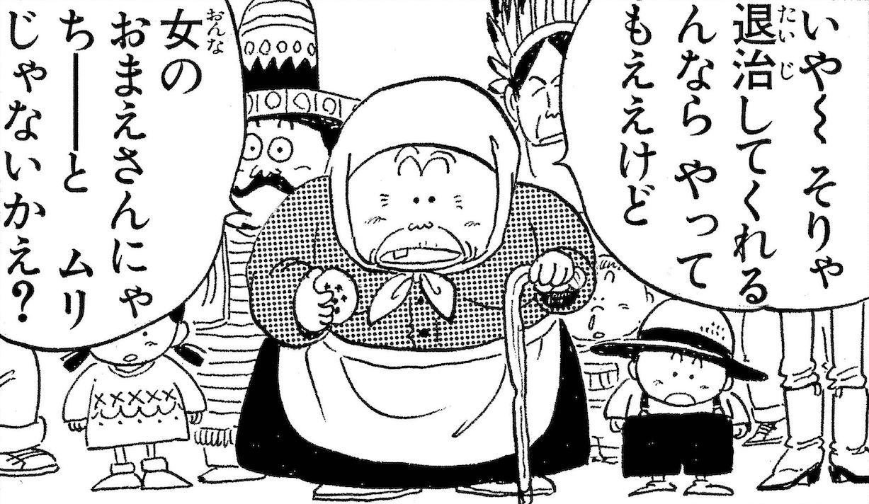 ああ、同じキャラでしたね! ウーロンにだまされてた村のおばあちゃんで、「これとちゃうけ?」とか「〜かえ?」とか、明らかに標準語じゃない喋り方をする。