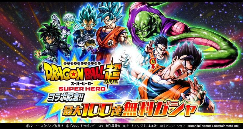 映画『ドラゴンボール超 スーパーヒーロー』コラボを記念して、最大で100連プレイ可能な無料ガシャを開催!