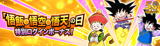 「悟飯・悟空・悟天」の日特別ログインボーナス開催中! 5/8(日)〜5/10(火)の3日間は毎日ログインすると合計42個の「龍石」をGET