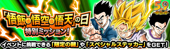 「限定の鍵」 などの報酬をGETしよう! 獲得した「限定の鍵」は追憶の扉から孫親子専用のスキル玉が獲得できる限定イベントに挑戦することができるぞ! また、名称に「孫悟飯」「孫悟空」「孫悟天」を含む一部キャラクター専用のキャンペーン記念スペシャルステッカーも獲得可能だ!