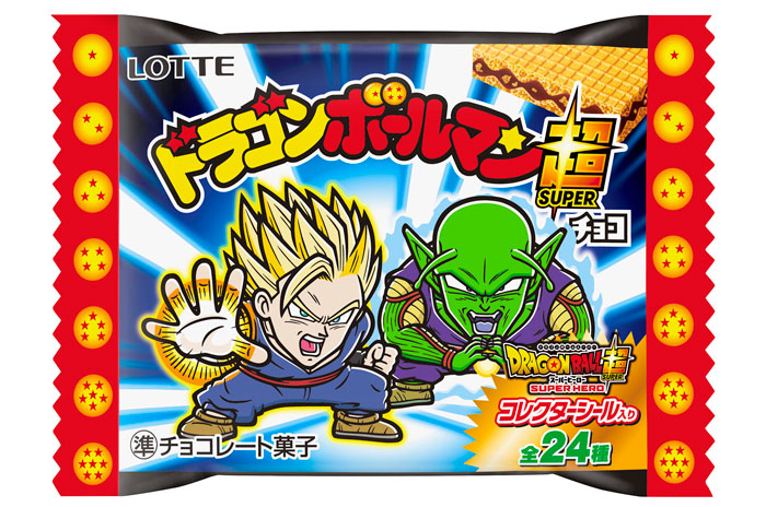 ビックリマンイラストレーター描き下しのコレクターシールは全24種、パッケージは2種類! 映画『ドラゴンボール超 スーパーヒーロー』に登場するキャラクターをシール化しているぞ。シークレットシールとして、ビックリマンとのコラボver.もあるぞ。