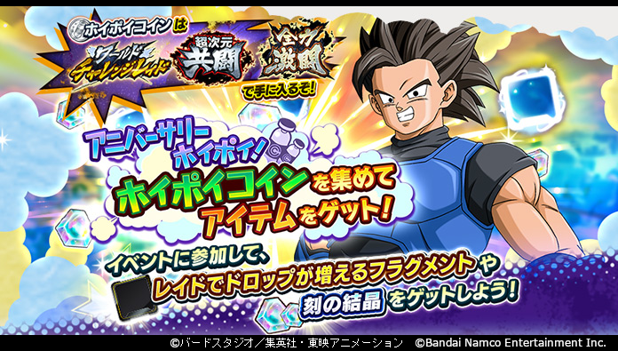 集めた「キズナコイン」は交換所でガシャチケットや「マルチZパワー」などのアイテムと交換しよう! さらに「ホイポイコイン」を使って、「アニバーサリーホイポイ」に挑戦だ!