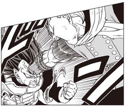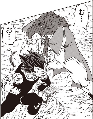 覚醒したガスの圧倒的な力に敗北するグラノラ。しかし、それを見た悟空が、ベジータからエネルギーを受け取り、ガスに闘いを挑みます。