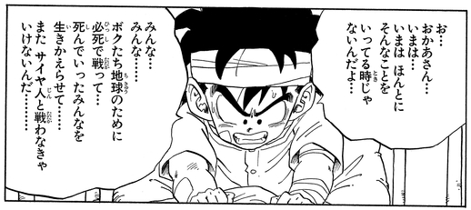 ナッパに殺されたピッコロを生き返らせるために、ドラゴンボールを求めてナメック星へと向かう。