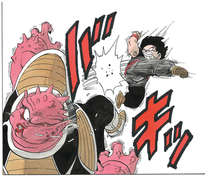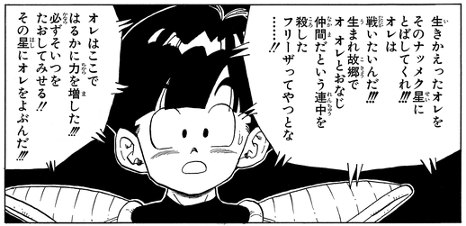 ナメック星人たちから力ずくでドラゴンボールを奪うフリーザたちに激昂し、ドドリアを蹴り飛ばしてデンデを救った。