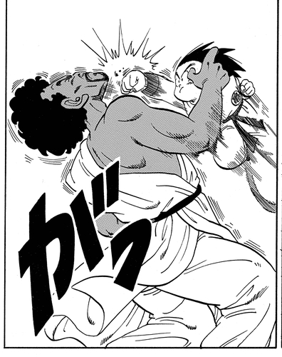 本気を出して得意技の八手拳を繰り出すも、悟空に難なくかわされたうえに、足元の隙をつかれ転倒。