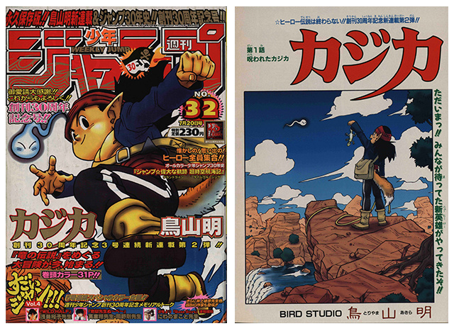 『ドラゴンボール』の連載終了からおよそ3年後、週刊少年ジャンプの創刊30周年記念号に登場した、待望の新連載。『カジカ』について鳥山先生は「ドラゴンボールの反動でとっても地味な作品ではありますが ボクはこういうのがスキなのであります。」と、思い入れのある作品であることを語っている。