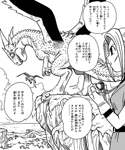 ギバチは「竜の子供の血を飲むと とてつもない力を得られる」という言い伝えを信じ、手下たちを使ってタマゴを探していたのです。