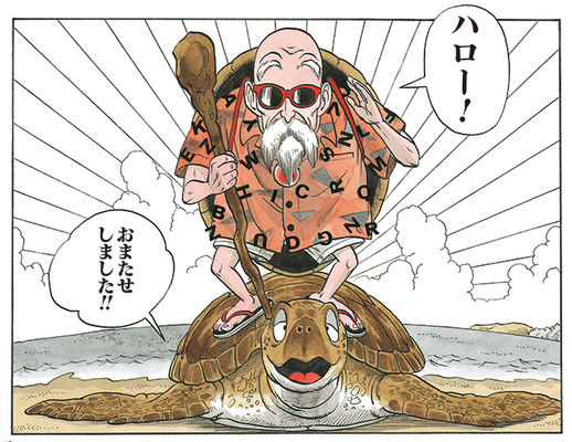 背中の甲羅とサングラスがトレードマークの、スケベでファンキーなじいさん。ウミガメを助けてもらったお礼に、悟空に筋斗雲を授けた。