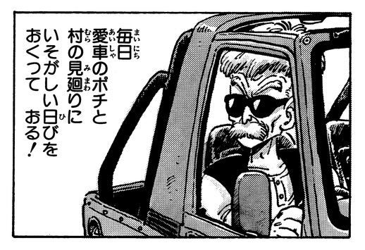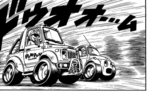 週刊少年ジャンプの485万部発行記念号に「メリー・クリスマス!大爆走読切」として登場。ポンポン村の村長が愛車を駆って村を守る、スピード感あふれるチェイスコミックです。鳥山先生が大好きな車が描きたかったというだけあって、カーチェイスのシーンは超迫力!
