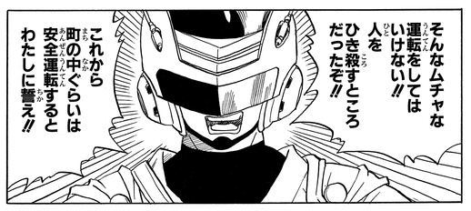 村の秩序を守るためなら、どんな小さな悪事も見逃さない。まるでグレートサイヤマンのよう!