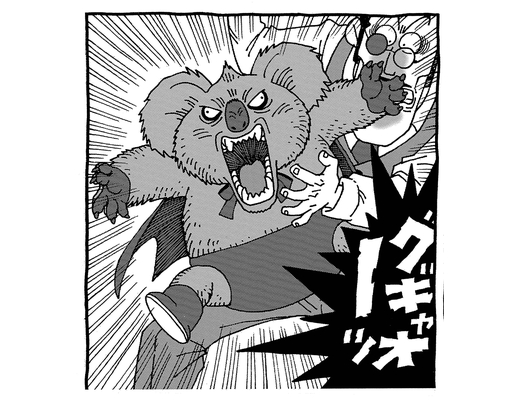 とぼけた顔したパイフーも、十字架を見ると…凶暴なコアラ男に大変身しちゃうのです!