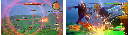 さらに、新モード「人造人間強襲」が追加。フィールド上に点在するドローンの警戒範囲に近づきすぎると、人造人間17号&18号とのバトルが開始! 条件を満たして離脱を目指せ!