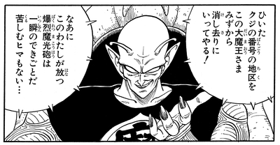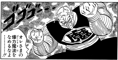 爆烈魔光砲も爆力魔波も、そしてこの後ご紹介する魔貫光殺砲も、“溜め”が重要となる技です。作中で爆力魔波を使用した時、溜めの最中に悟空に攻撃されましたが、小型艇の上でもブレない体幹と打たれ強さを以て倒れることなく、そのまま攻撃に移りました。