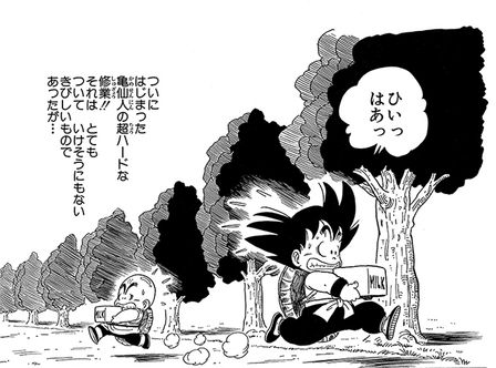 第21回天下一武道会決勝戦。ジャッキー・チュンに場外へ蹴り飛ばされた悟空が、なんとシッポをヘリコプターのように回転させて空中移動! 弱点であるシッポを巧みに利用して、場外負けのピンチから逃れた。