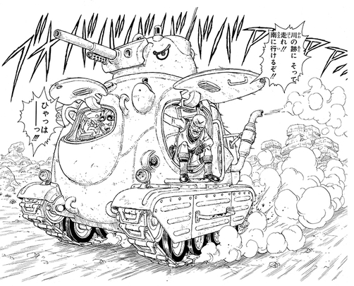 “あの鳥山先生が21世紀へ向けて贈る大巨編”として登場。鳥山先生がすべてをひとりだけで仕上げることにこだわり、消しゴムかけの半分以外はすべてひとりで描いた意欲作です。「今回はどうせなら個人的に描いてて楽しい(はずだった)、じいさんと戦車の漫画でいこう」ということで、度肝を抜くほどカッコいい、渋いじいさんとオリジナルデザインの戦車に注目です。