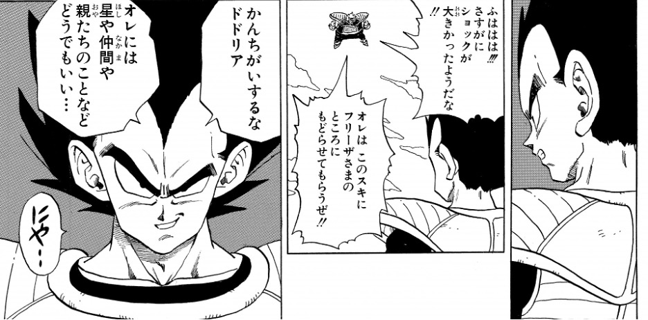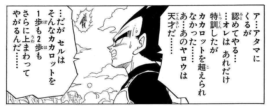 ベジータは幼い頃に父親であるベジータ王を亡くしていますが、原作のセリフを読む限り、そのことにショックを受けている様子はあまり見られません。この点について、教育心理学者の赤松大輔先生は 「(ベジータが)父親とは何かを知らずに育った」と指摘。これが、作中のさまざまなシーンで顔をのぞかせる「対人関係の不器用さ」につながったと考察します。