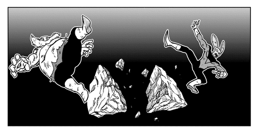 フリーザの追撃によって場外の足場に追い詰められたトッポは、助けに来たディスポとともに場外に落ちてしまった。