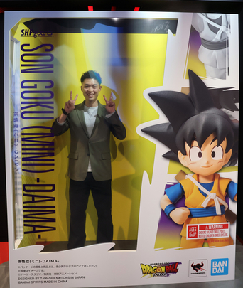 会場を案内して頂いた、S.H.Figuarts『ドラゴンボール』シリーズ企画担当MOTTO! OKAMOTOさんに見本となっていただきました。