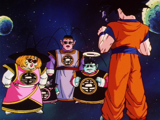 あの世一武道会では武舞台にかぶりついて激しくゲキを飛ばしていた東の界王。全員が負けると「私の顔に泥を塗りおって!」と、怒りが爆発! 戦士たち全員に大界王星一万周のキツイ罰を与えた。