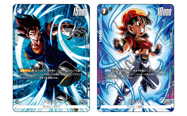 選べるプロモーションカードは、FB04-046「ベジット」とFB04-117「パン:GT」のパラレル版カード! どちらも、あふれる闘気を表現したイラストになっているぞ!!