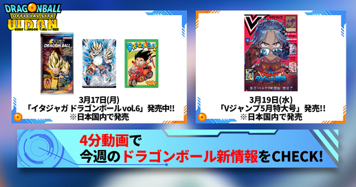 「Weekly Dragonball News」は、毎週月曜日に『ドラゴンボール』の新情報をお届けする動画配信だ。前の週に解禁された情報や、1週間に発売される商品の情報などを、Vジャンプ編集部ビクトリー・ウチダがお知らせするのだ!