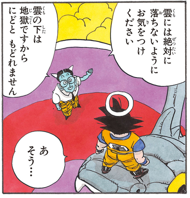 あの世について詳しく知っており、蛇の道がおよそ百万キロあることや、雲の下の地獄に落ちると2度と戻れないことなどを悟空に教えてくれた。