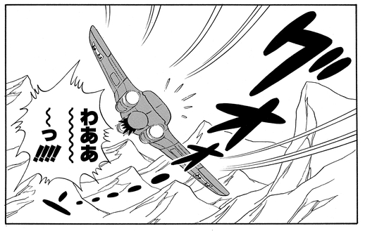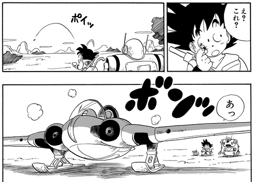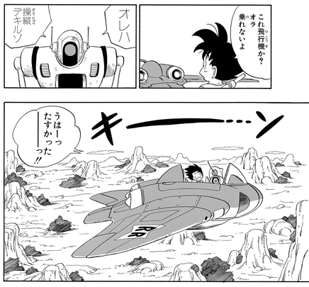 悟空に代わって飛行機を操縦し、ドラゴンボールがある北の方角へ。