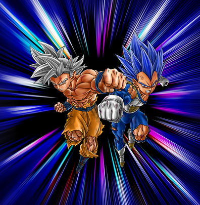 イラストは「身勝手の極意」を発動した悟空と、超サイヤ人ゴッド超サイヤ人(進化)のベジータが肩を並べ、渾身の一撃を放つ──魂まで震えるような超スペシャルな一枚です!