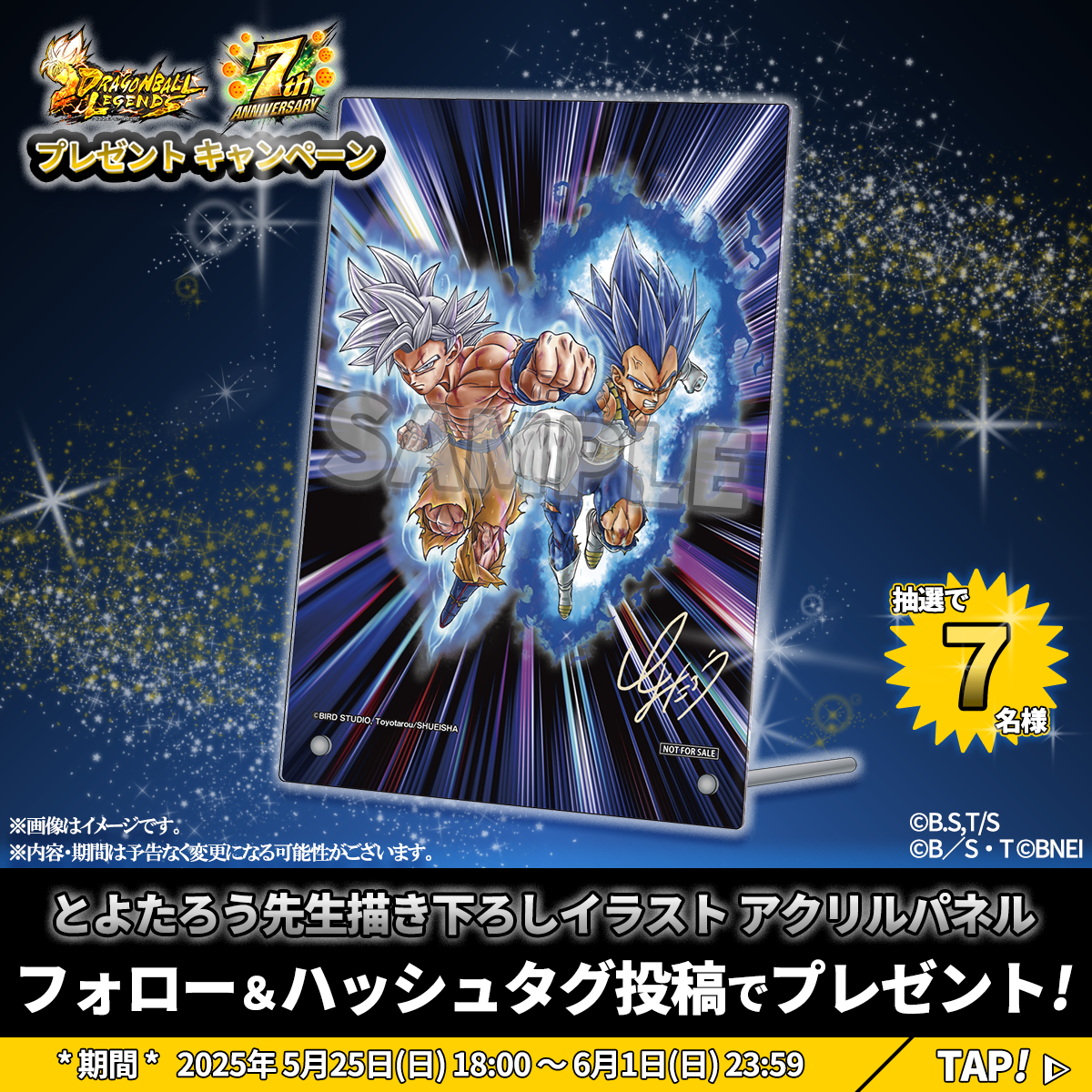 リリース開始から7周年を迎えるアプリゲーム「ドラゴンボール レジェンズ」が、『ドラゴンボール超』のとよたろう先生とコラボレーション!