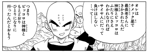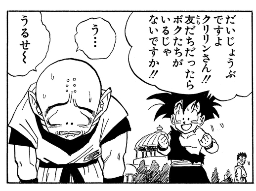 セルから吐き出された18号を懸命に庇って神様の神殿に連れて行ったが、「手でもにぎってほしいのか? チビのオッサン」と言われ深く傷つく。