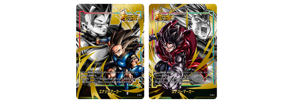 どちらも「ドラゴンボール レジェンズ」のド迫力イラストを使用した、オールキラ仕様の特別な構築済みデッキとなっているぞ!!