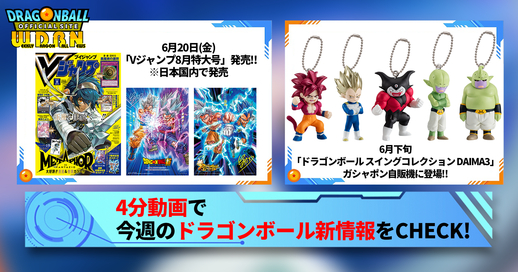 「Weekly Dragonball News」は、毎週月曜日に『ドラゴンボール』の新情報をお届けする動画配信だ。前の週に解禁された情報や、1週間に発売される商品の情報などを、Vジャンプ編集部ビクトリー・ウチダがお知らせするのだ!