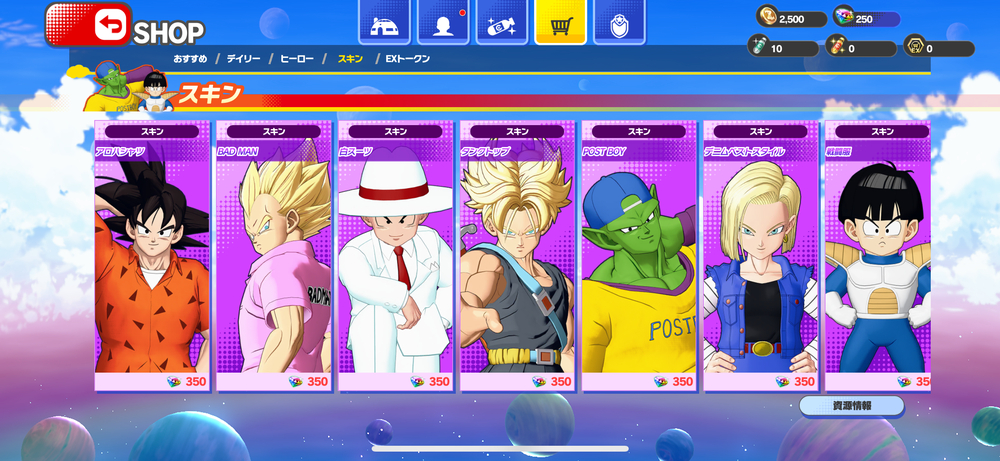 楽しい要素は、キャラクターの服装などを変えられる「スキン」でも見受けられました!!