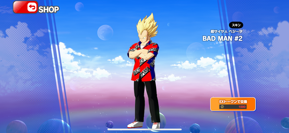 SHOPには、アニメ『ドラゴンボールZ』で悟空とピッコロがクルマの免許を取得した時の衣装などが並んでいます。
