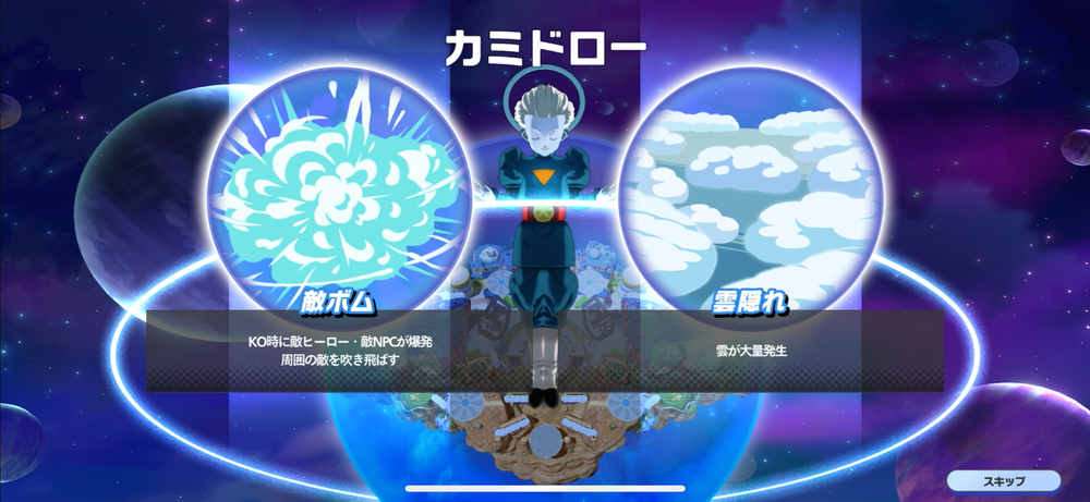 今回のカミドローは、雲が大量発生して敵も自分も見えにくくなる「雲隠れ」と、倒した敵が爆発して周囲の敵が吹き飛ばされる「敵ボム」でした。