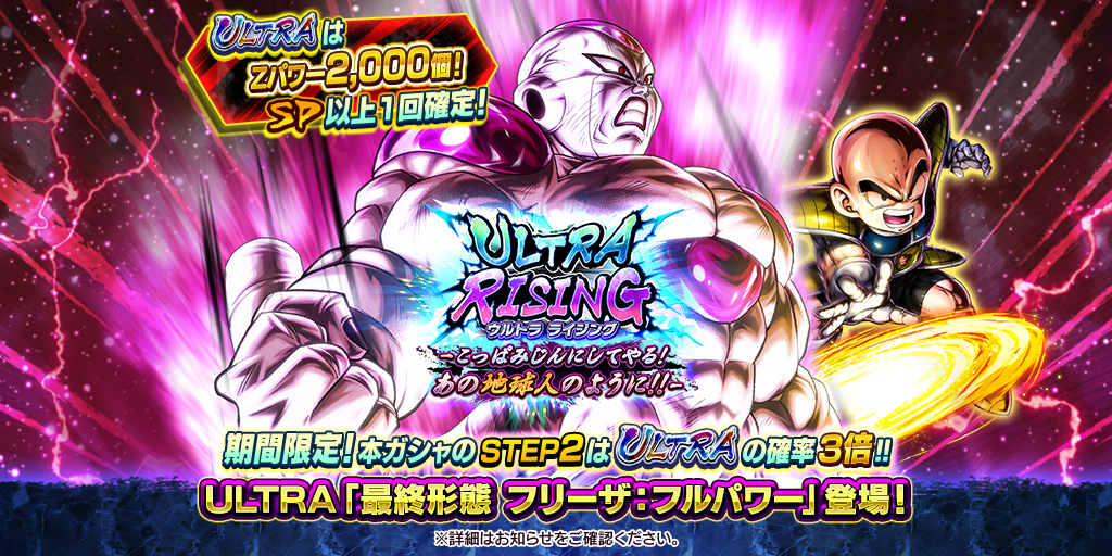 ULTRA「最終形態 フリーザ:フルパワー」が獲得できるガシャは、STEP2のULTRA出現率が通常2倍のところ3倍になっているぞ!