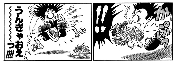 プーアルに噛み付いたもののハリモグラに変化され、あまりの痛さに絶叫する。