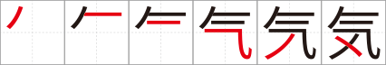 意味:こころ。精神。意向。生まれつき。空気などの気体。自然界の現象。いき。