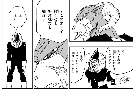 モロが悟空とベジータを倒すと「モロさんなら勝てると思ってました」と言い訳をしたが、モロには見抜かれていた。