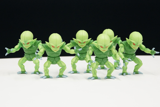 恐らく「我々が令和で一番真摯に栽培マンに向き合った存在である」と主張したくなるくらいの出来栄えにできたと思います! 栽培マンはできれば複数体飾りたいキャラクターだと思いますので、ダブった時にこそ楽しめるように、腕、頭、手首を簡易可動できる仕様になってます。ポーズのニュアンスを少し変えつつ、ベジータやナッパの傍らに置いて頂きたいです!