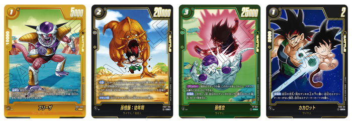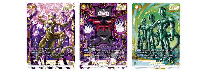 黄色のSRパラレルカードは、「ゴールデンフリーザ」「ジャイアントゴマー:DA」「メタルクウラ」。