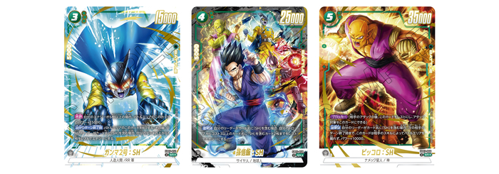 緑のSRパラレルカードは、「ガンマ2号:SH」「孫悟飯:SH」「ピッコロ:SH」。