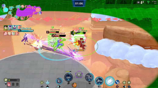 本作のジャンルは「超圧倒チームバトル」! 歴代の「ドラゴンボール」キャラクターがマップ上で熱い闘いを繰り広げる、4vs4のチーム戦を楽しめるぞ!!