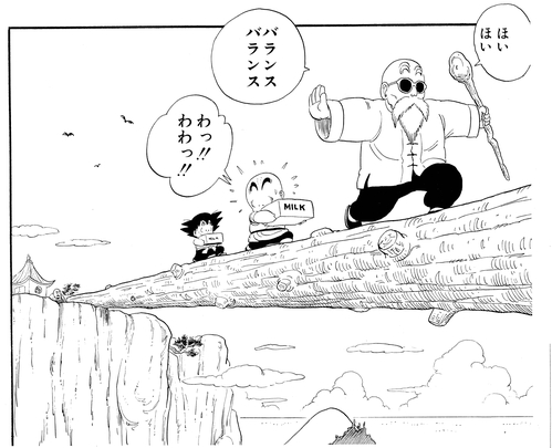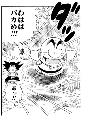 ジャングルに投げられた亀マークの石を探す修業では、悟空が見つけた石を奪って勝つという、卑怯な一面を見せる。