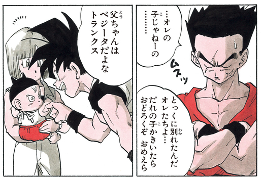 浮気症が原因で恋人のブルマと別れ、ブルマとベジータの間には息子のトランクスが誕生。