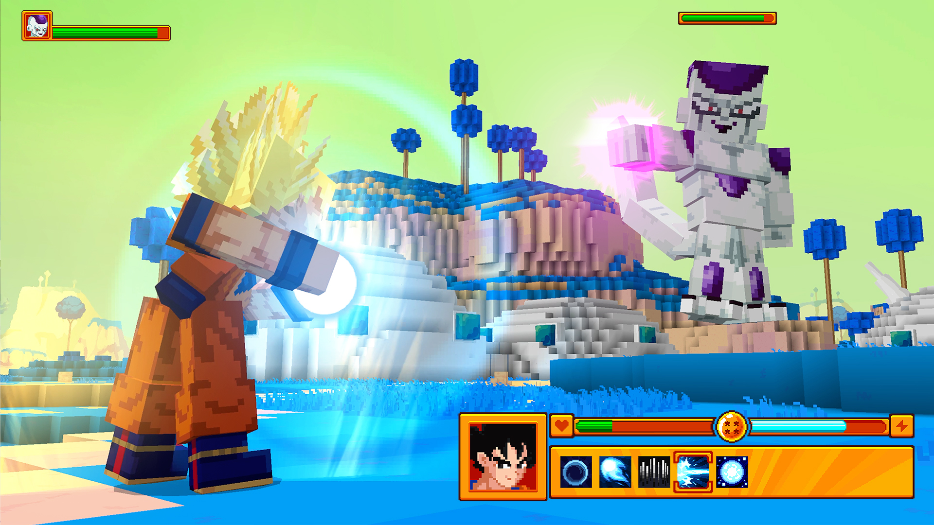 「Minecraft」と言えばブロックで構成されたキャラクターが特徴的なゲームだが、このDLCに登場する悟空たちも、もちろんブロックの姿になって登場!